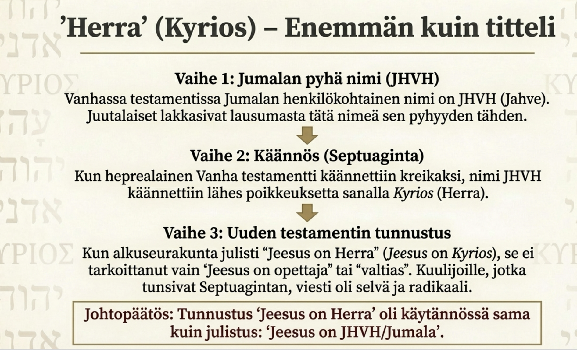Jo näistä huomaamme, että Jeesus ilmoitti itsensä juuri samoilla nimillä mitä Jumala oli itsestään puhunut jo alusta asti. Pelkästään ”MInä olen” oli vahva Jumalan nimi, jonka ääneen lausuminen oli sen vuoksi kielletty israelilaisille. Jeesus taas puhui itsestään jatkuvasti ”MInä olen” termillä mm ”MInä olen tie”.